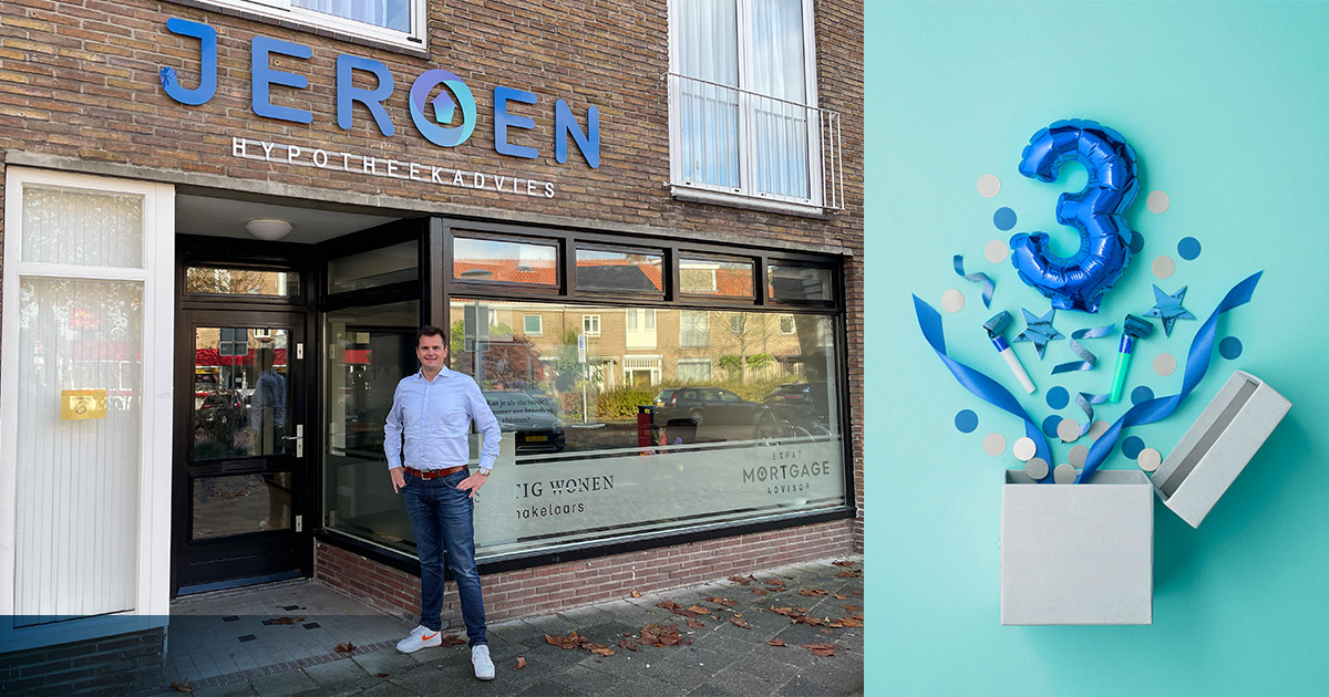 Jeroen Hypotheekadvies bestaat drie jaar. Waar is het allemaal begonnen en wat is het geheim...